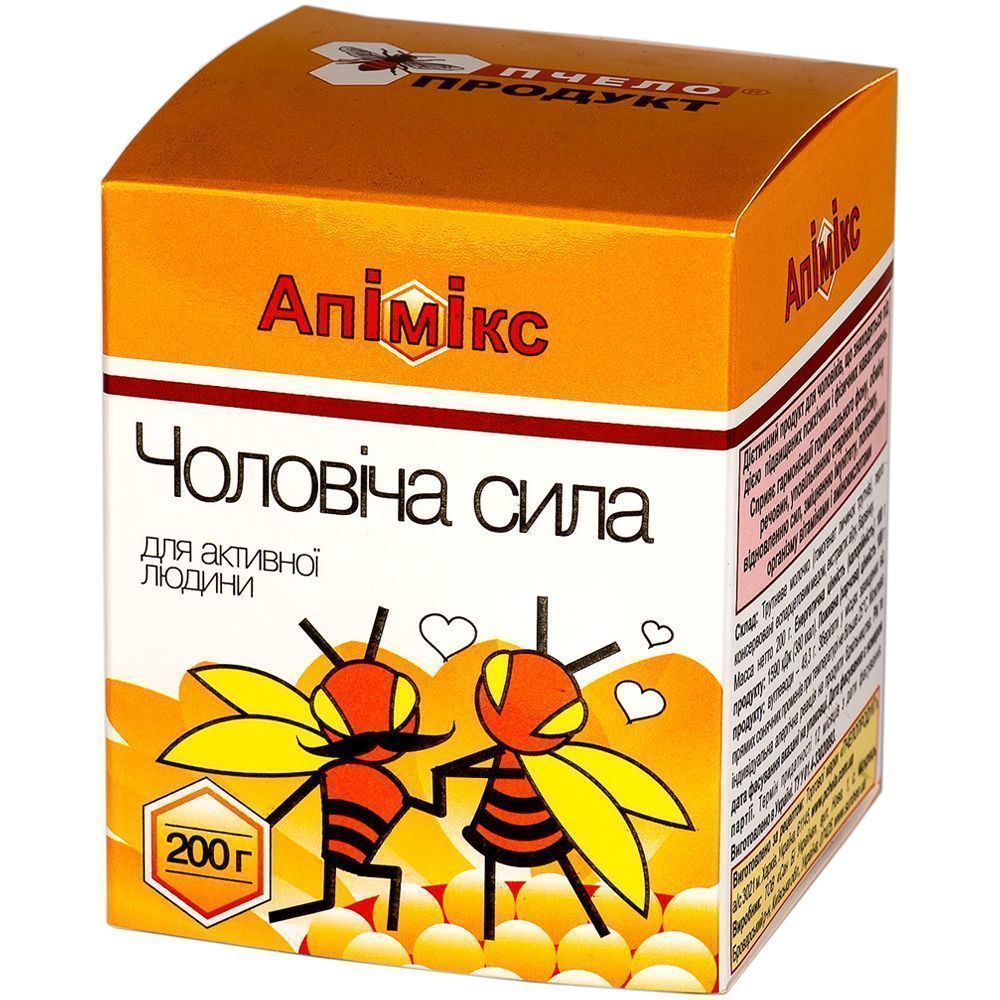 Биологически активные вещества, входящие в состав «Апимикс Мужская сила» оказывают тонизирующее действие, восстанавливают обмен веществ и питание тканей, оказывают регулирующее действие на тонус сосудистой системы и уровень кровообращения, снижают уровень холестерина в крови, способствуют ускоренному восстановлению биохимических характеристик семенников и предстательной железы, являясь стимулятором центральных механизмов регуляции образования андрогенов, повышают физическую работоспособность, способствуют восстановлению нарушенной половой функции у мужчин и повышению полового влечения. Активируют ферментный обмен при лечении бесплодия и импотенции, восстанавливают работу надпочечников, при лечении онкологических заболеваний, улучшают сон, аппетит, память.Применение: принимать 2-3 раза в день по 2ч. ложки за 20-30 мин до еды.