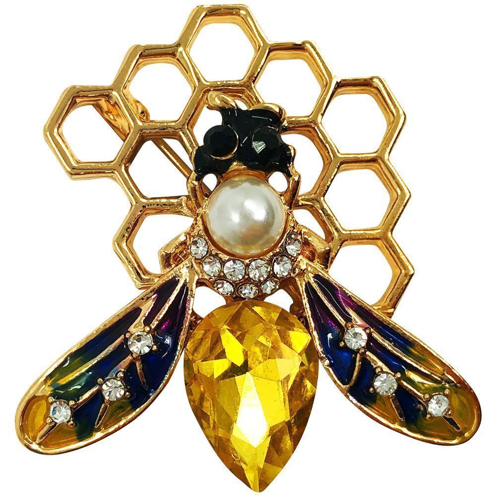 Крылья пчелы украшены эмалью, туловище сочетает в себе комбинацию жемчуга и большого камня янтарного цвета.