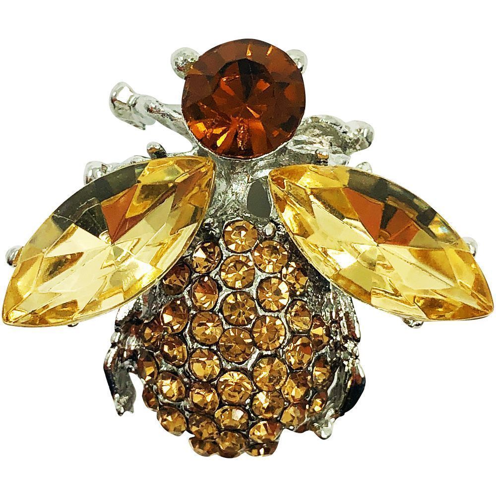 Маленькая, но объемная брошь в виде жука привлекает взгляд крупными камнями в медовых оттенках.