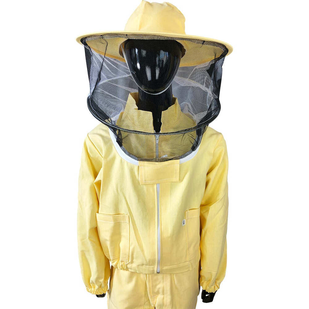Куртка оснащена рукавами и поясом на резинке, которые надежно фиксируют куртку и предотвращают попадание пчел под нее. Шляпа пчеловода в комплекте имеет защитную сетку, обеспечивая полную защиту головы и лица ребенка.