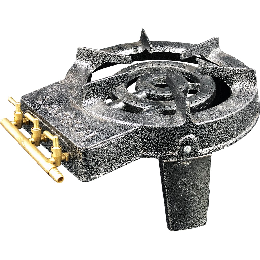 Газовая горелка мощностью 9.2 кВт имеет надёжное чугунное основание и три контура для плавного регулирования температуры и мощности. Расчитана под использование газа пропан, бутан или их смеси. Отлично подойдёт для использования с воскотопками разных объёмов, чугунные ножки и основание способны выдержать значительную нагрузку. Пчеловод может самостоятельно регулировать мощность горелки задействовав два контура при помощи трёх кранов – регуляторов в передней части. Внутренний контур имеет небольшой диаметр, 7.5 см – оптимально использовать с ёмкостями маленького размера, для поддержания небольшой температуры и интенсивности кипения. Наружный контур имеет диаметр 17.5 см – рационально использовать в сочетании с малым контуром для разогрева больших ёмкостей и поддержания высокой интенсивности кипения.Максимальная нагрузка на конструкцию горелки составляет 150 кг.
