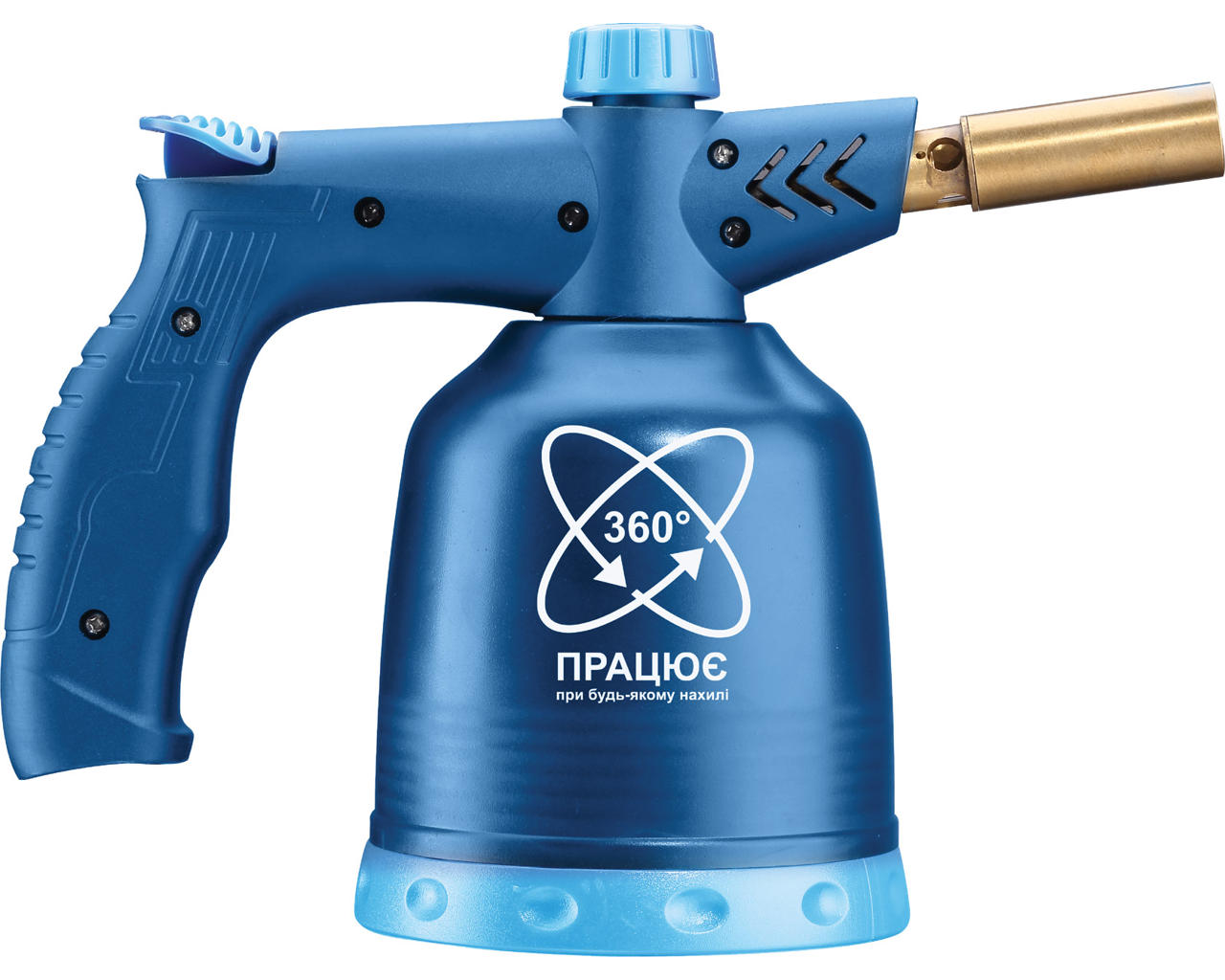 Газовая паяльная лампа VITA с латунным соплом и пластиковым корпусом. В конструкции лампы применяется пьезоэлемент для розжига пламени. Вырабатывание искры происходит после нажатия на кнопку пьезоподжига, расположенную в верхней части ручки. Так же в верхней части устройства имеется регулятор, используемый для регулирования силы пламени.Специальная конструкция лампы, позволяет ее использовать под любым углом, благодаря этому, она получила широкое применение в пчеловодстве, в мастерских, в быту и на производстве.