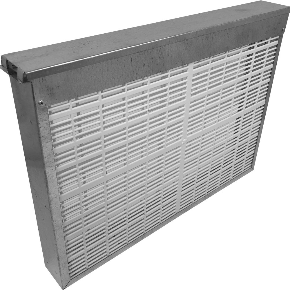 Изолятор на 1 рамку Дадан с боковой частью из пластиковой ганемановской решетки предсталяет собой металлический корпус и крышу из оцинкованой стали с разделительными пластиковыми решетками по бокам. Сверху корпус изолятора оснащен пазами для фиксирования рамки. Комбинирование металла и пластика позволило сделать изолятор более легким и стойким к внешним воздействиям.