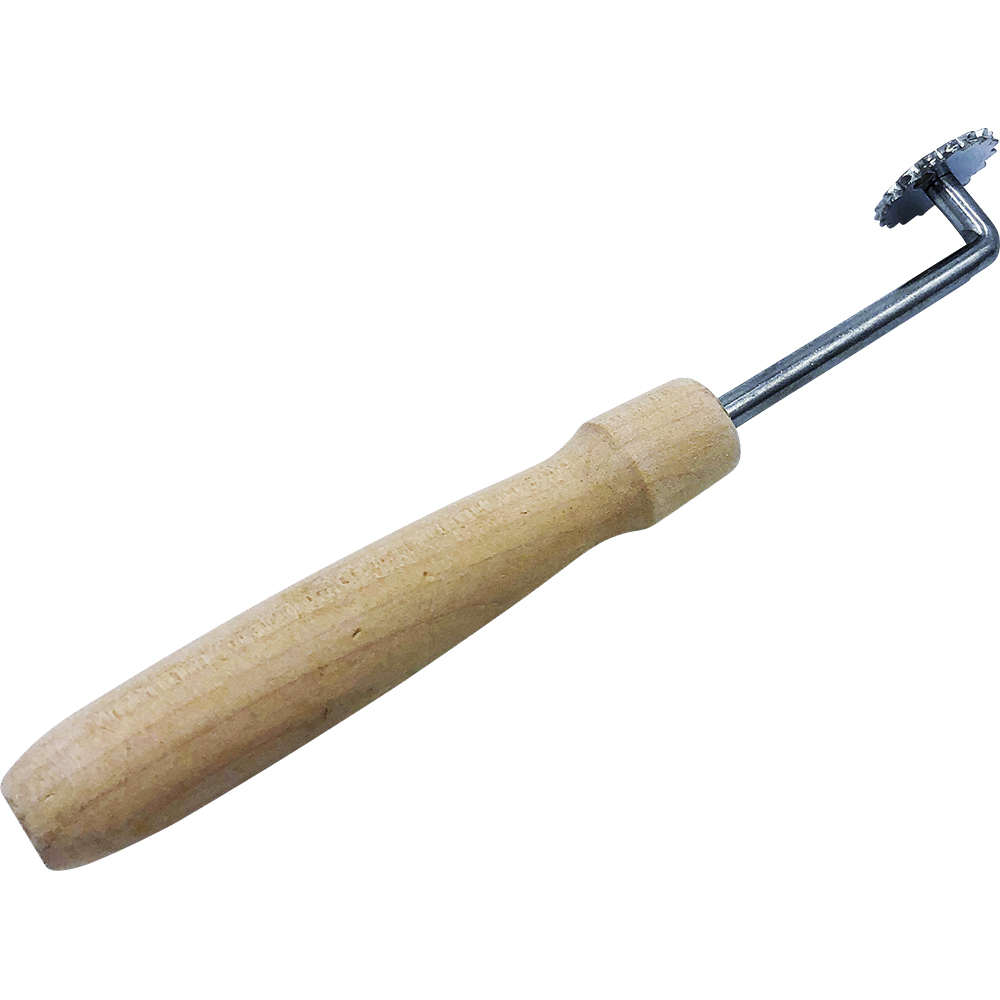 Каток для наващивания имеет общую длину 19.5 см, диаметр зубчатого колесика для наващивания 25мм. Деревянная рукоятка позволяет удобно держать инструмент в руке.Характеристики