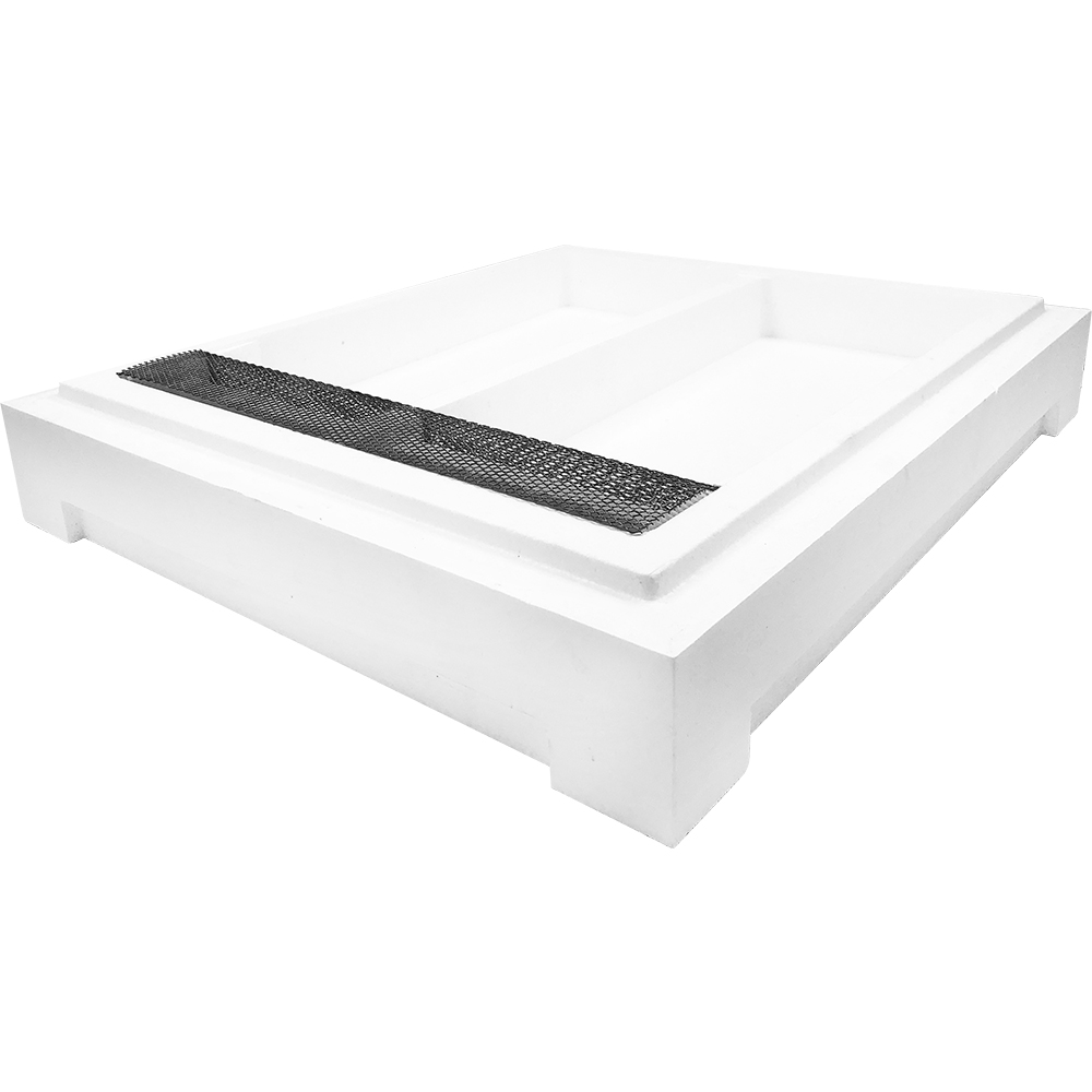 Кормушка из пенополистирола совместима с ульями APIX на 10 рамок. Изготовлена из пищевого пенополистирола (ППС, пенопласт) плотностью 100 кг на метр кубический. Изделие изготовлено по технологии цельного литья. Дно имеет уклон для полного стекания остатков сиропа к входу в кормушку, где пчелы могут его забрать. Общий объём кормушки 6 литров. Конструкция кормушки предусматривает разделение на 2 отсека по 3 литра. Толщина стенки в самом тонком месте 45 мм, высота 8 см. В месте входа в кормушку установлена сетка, которая препятствует проникновению пчел в отсек с сиропом и предупреждает их утопление. При необходимости сетку можно извлечь и уложить в отсеки по пакету канди - подкормки. Для оптимальных условий зимовки, мы рекомендуем оставлять кормушку на весь зимний период, так как влага из улья будет скапливаться в кормушке и весной её можно будет легко удалить, а семья останется в теплом и сухом гнезде. При использовании перегородки и сетки в кормушке пчелы из разных частей улья в кормушке пересекаться не будут. Поверхность изделия гладкая, не требует предварительной подготовки перед покраской, как и весь улей APIX. Рекомендуется использование фасадной краски на водной основе. Окрашивание необходимо для защиты от воздействия атмосферных условий и длительной эксплуатации.Характеристики