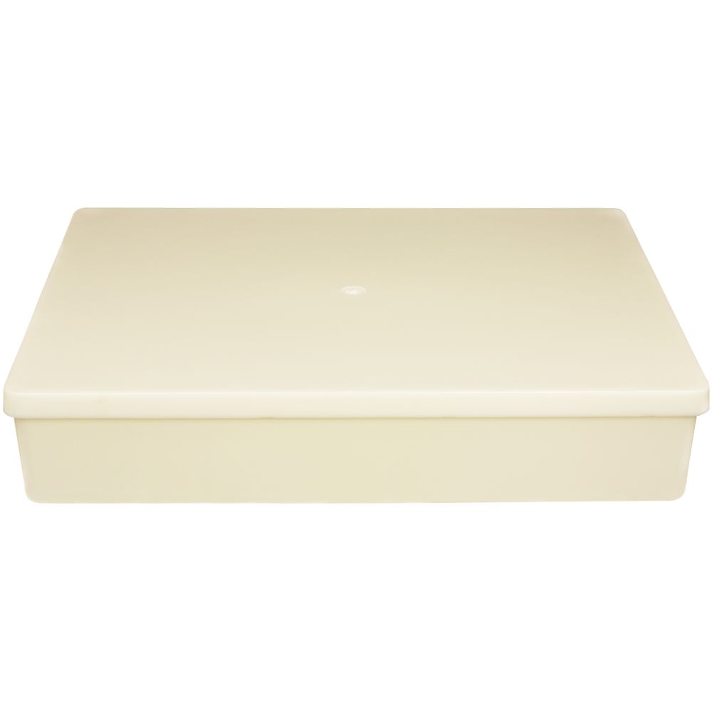 Потолочочная кормушка выполнена в квадратной форме из пищевого пластика. Объем модели может вместить 6 литров жидкого мёда или сахарного сиропа на усмотрение пчеловода. Для избежания потопления пчёл в жидкости, конус по которому спускаются пчёлы имеет рельефное покрытие а также специальный стакан, которые ограничивает передвижение пчёл по кормушке. Размещение кормушки осуществляется по центру гнезда прямо на рамки.Характеристики