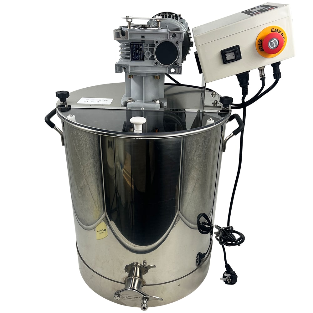 Кремовалка автоматическая Bienenwagner предназначена для профессиональной переработки жидкого меда в крем-мед.Конструкция представляет собой бак, изготовленный из высококачественной нержавеющей стали, диаметром 400 мм и высотой 480 мм, вмещающий до 60 кг меда. На крышке из нержавеющей стали размещены двигатель и мешалка с редуктором, их можно открепить для очистки с помощью отвертки TORX.