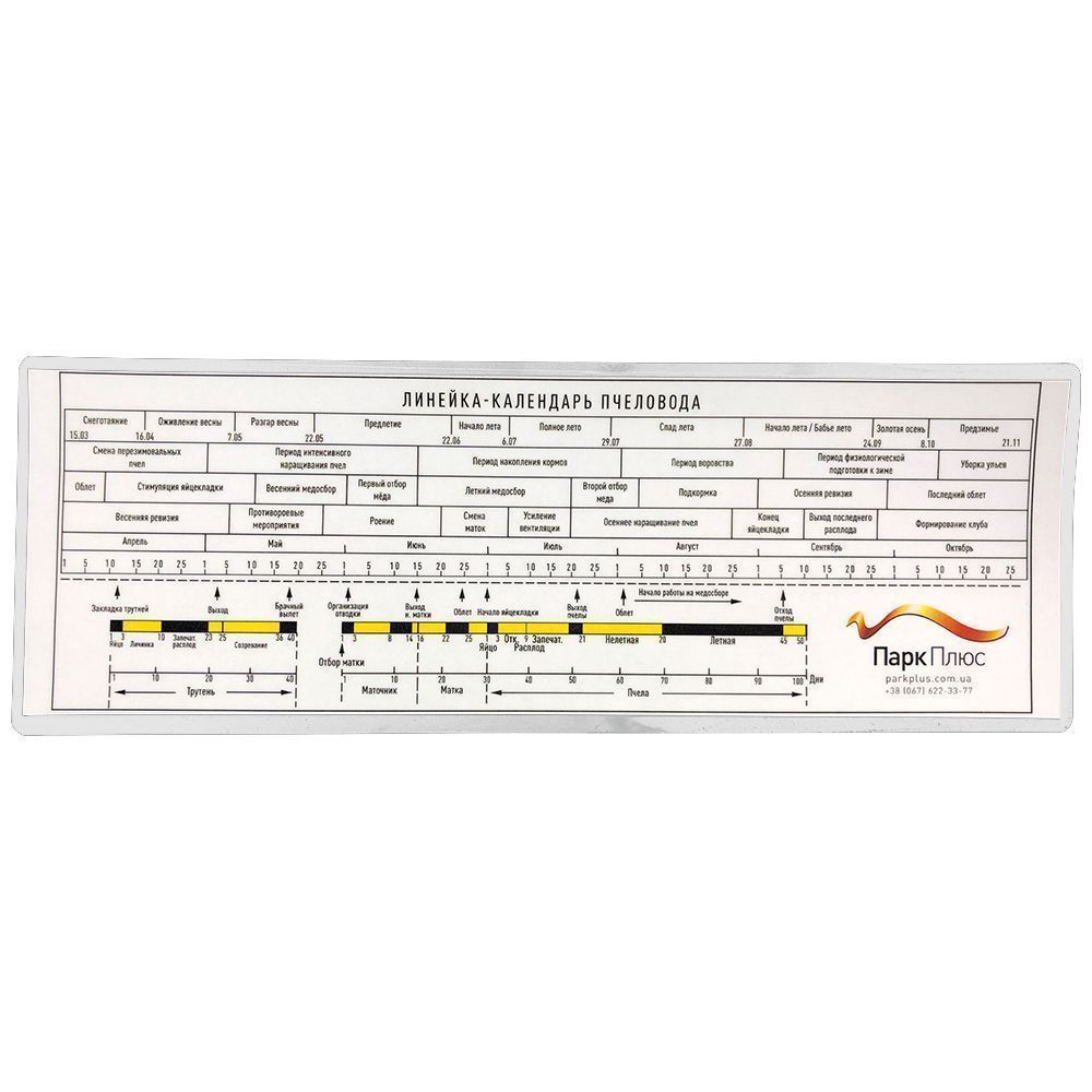 При работах на пасеке пчеловоду постоянно нужно рассчитывать и определять сроки проведения основных мероприятий на пасеке, держать в памяти состояние семей, период развития матки, пчел, трутня. В этом ему может помочь предлагаемая пчеловодная линейка-календарь. Такая линейка поможет лучше спланировать и организовать работу. Для удобства работы и долговечности, линейка заламинирована.
