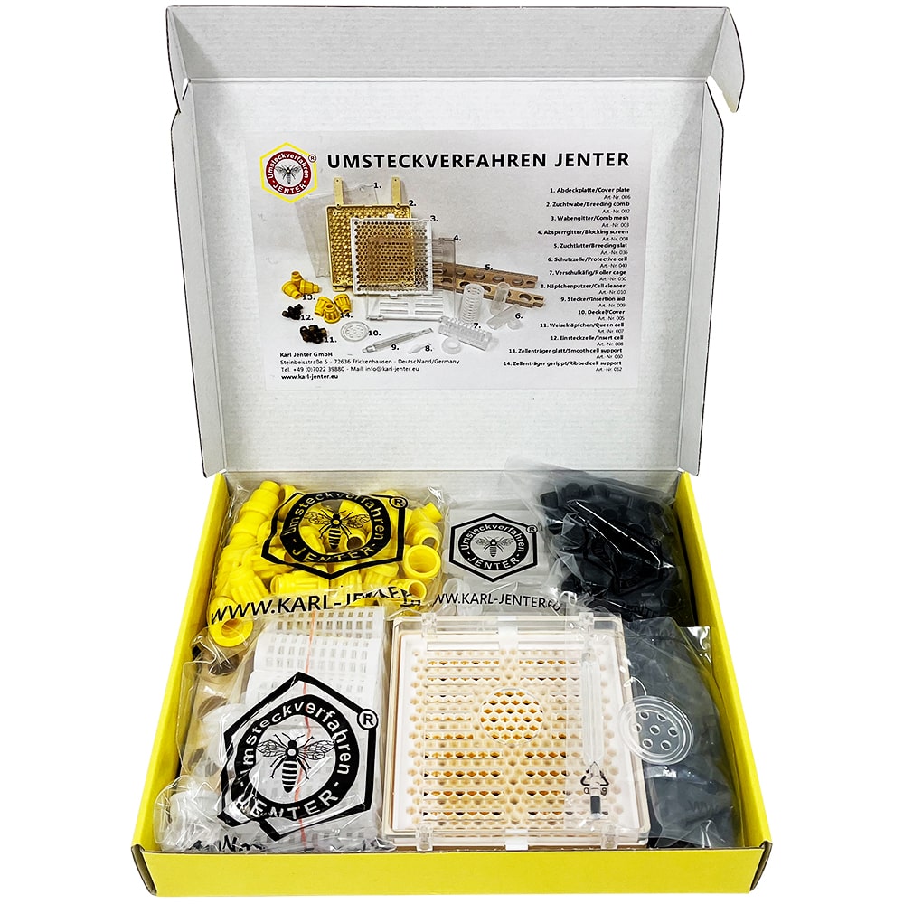 Система «Джентерский сот» - это специальный набор компонентов, включающий в себя сотовую кассету с разборными пластмассовыми ячейками-мисочками для выведения маток без переноса личинок.Сотовая кассета ― это коробка с перегородкой посередине, имеющей поверхность, как у основания пчелиного сота. На ней имеется 90 отверстий (4,4 мм), расположенных через две сотовые ячейки в перегородке. В эти отверстия с одной стороны входят 90 пластмассовых заглушек, вогнутые концы которых образуют донышки ячеек сота. После заполнения отверстий с тыльной стороны коробка закрывается крышечкой. С другой стороны в неё вставляется пластмассовая решетка, образующая нижнюю часть сотовых ячеек.