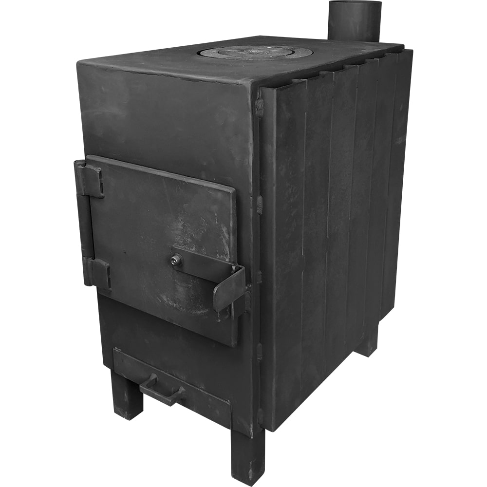 Печь буржуйка с радиатором и чугунной варочной поверхностью