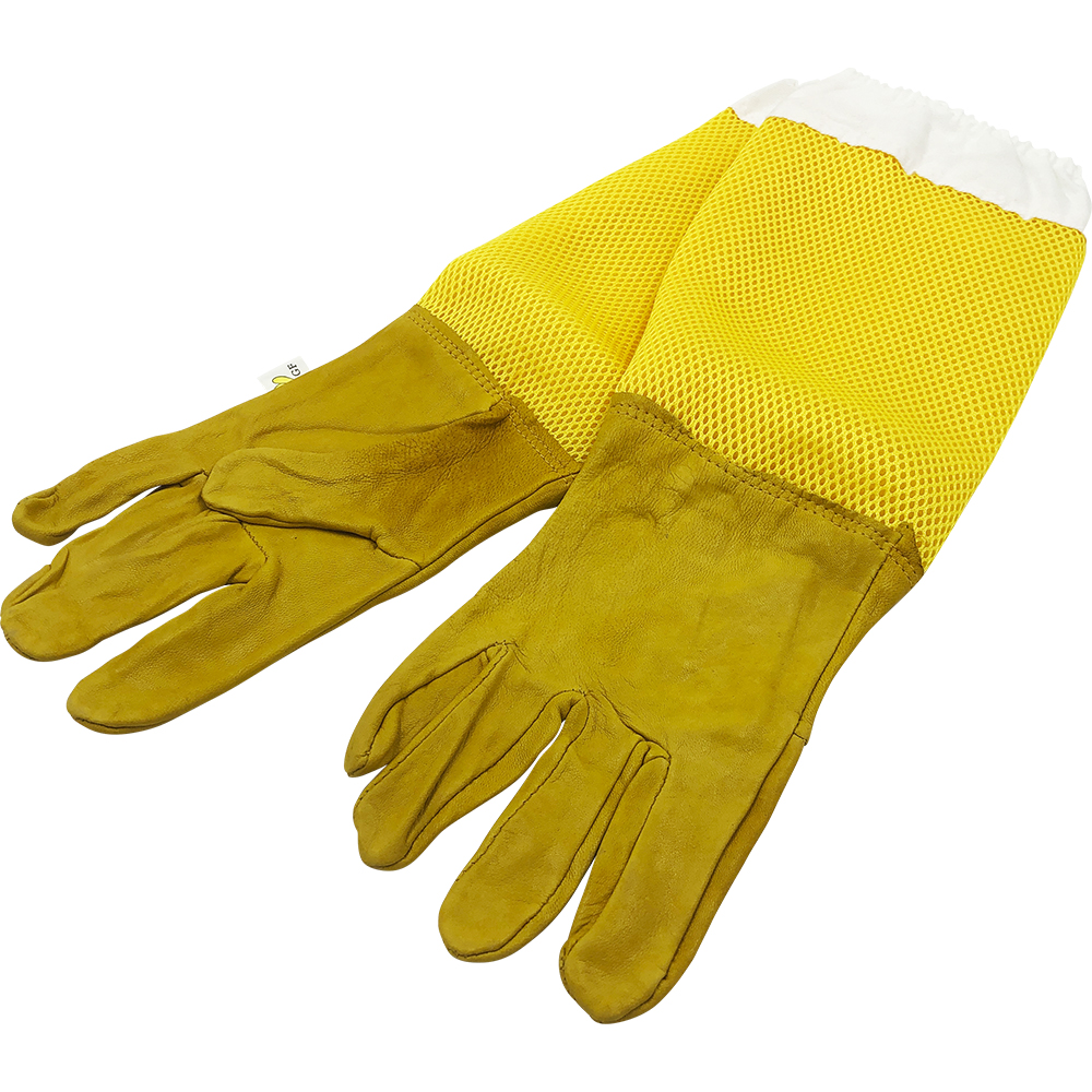 Перчатки пчеловода из мягкой кожи, комбинированные - плотный хлопок, сетчатые нарукавники