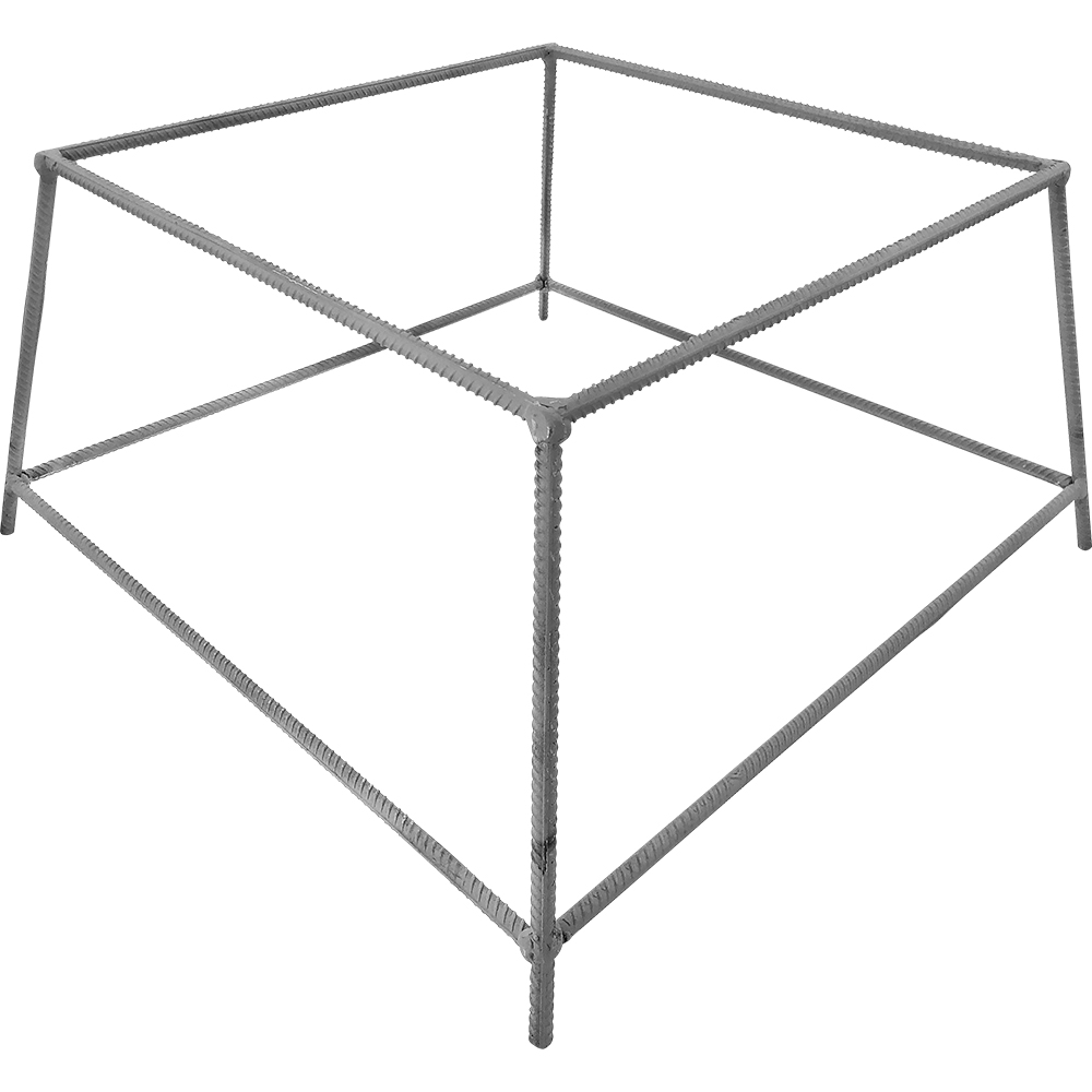 Данная подставка выполнена из арматуры и выкрашена серой грунтовкой.Пирамидовидная форма помогает без труда складывать подставки друг на друга, что не занимает много места и удобно при кочевке.