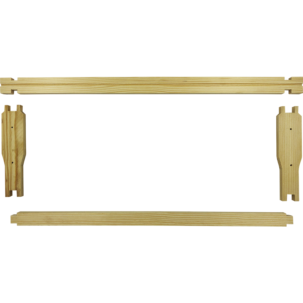 Рамка для улья Дадан изготавливается с влажность не более 8%. Высота рамки составляет 145 мм, которая отлично подходит под использование в магазинных корпусах. Каждая деталь рамки имеет точные размеры, согласно принятым стандартам. Конструкция рамки выполнена по типу евро-замка для продления срока эксплуатации, а также для ее более облегченной сборки. Верхняя планка имеет пропил под вощину. Боковые планки имеют отверстия под втулки для натяжки проволоки. Все детали рамки фиксируются между собой, как правило с помощью маленьких гвоздей. Но также можно фиксировать с помощью клея.Характеристики