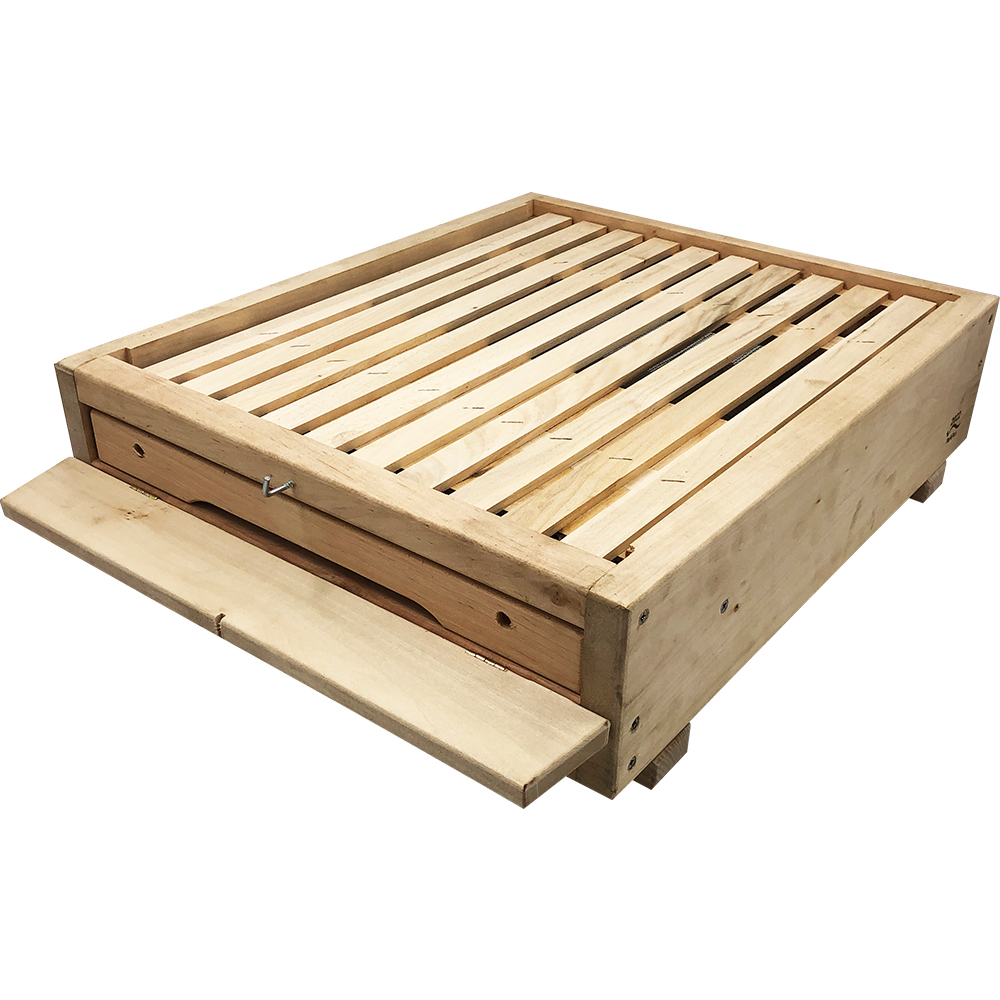 Деревянная решетка с отрезом фанеры, размещенная сверху, прикрывает решетку донного пыльцесборника от попадания мусора и отходов жизнедеятельности пчел. А также защищает от постройки не желательных языков сот под рамками гнезда.