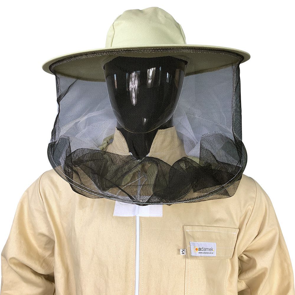 Шляпа является важной составляющей защитного костюма пчеловода. Она защищает лицо, голову и шею от ужаления пчел. Данная модель шляпы от польского производителя Adamek, отвечает всем требованиям пчеловода. Шляпа выполнена из плотного 100% хлопка и имеет сетку по всему периметру.Черная сетка – с лицевой стороны
