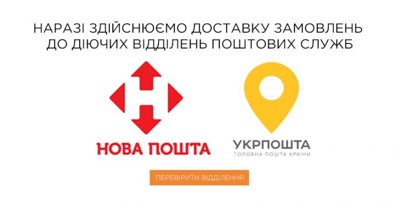 Компанія Парк Плюс на даний момент здійснює доставку замовлень тільки до діючих відділень двох поштових служб: Нової Пошти та УкрПошти. Ви можете знайти діючі відділення у вашому місті за посиланнями: