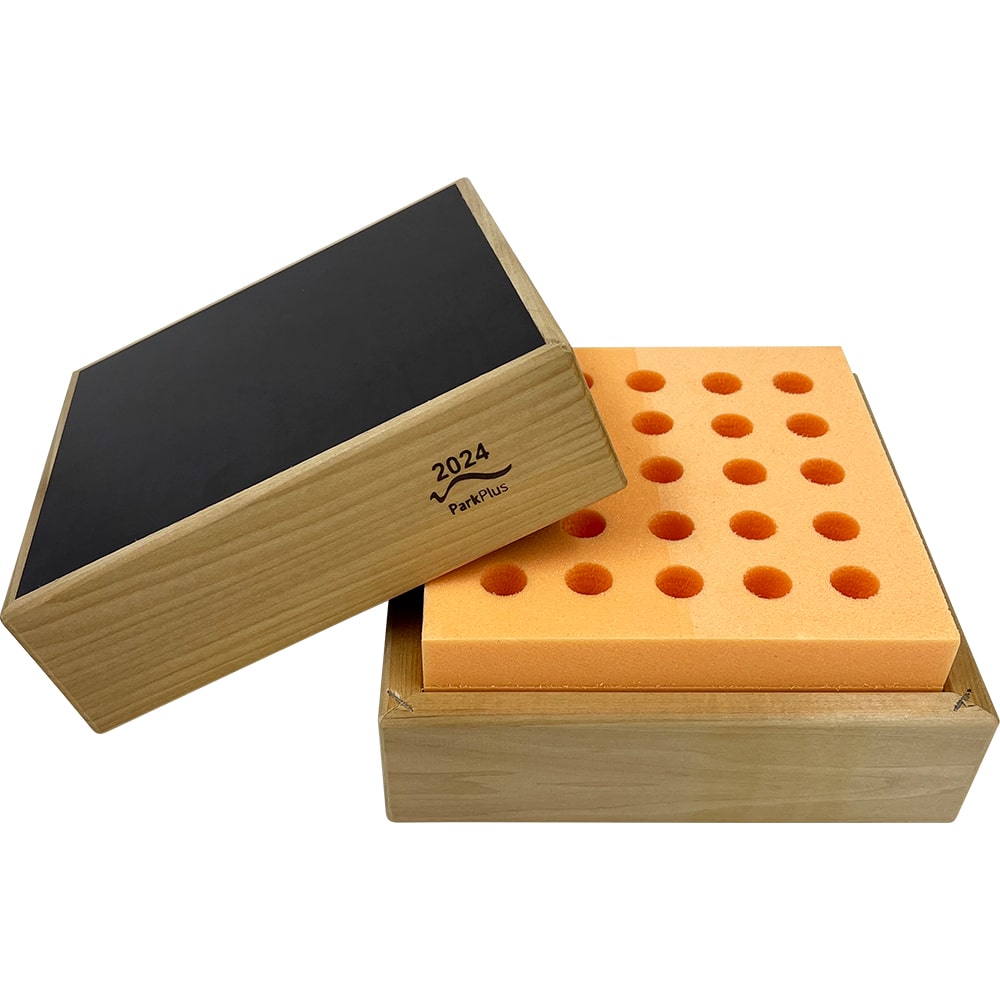 Коробка виступає в ролі термоса і маточники під час транспортування знаходяться як в інкубаторі, за стабільної температури та вологості. Для цього ми використовуємо екструдований пінополістирол висотою 100 мм, в якому акуратно виконано 25 отворів для маточників.