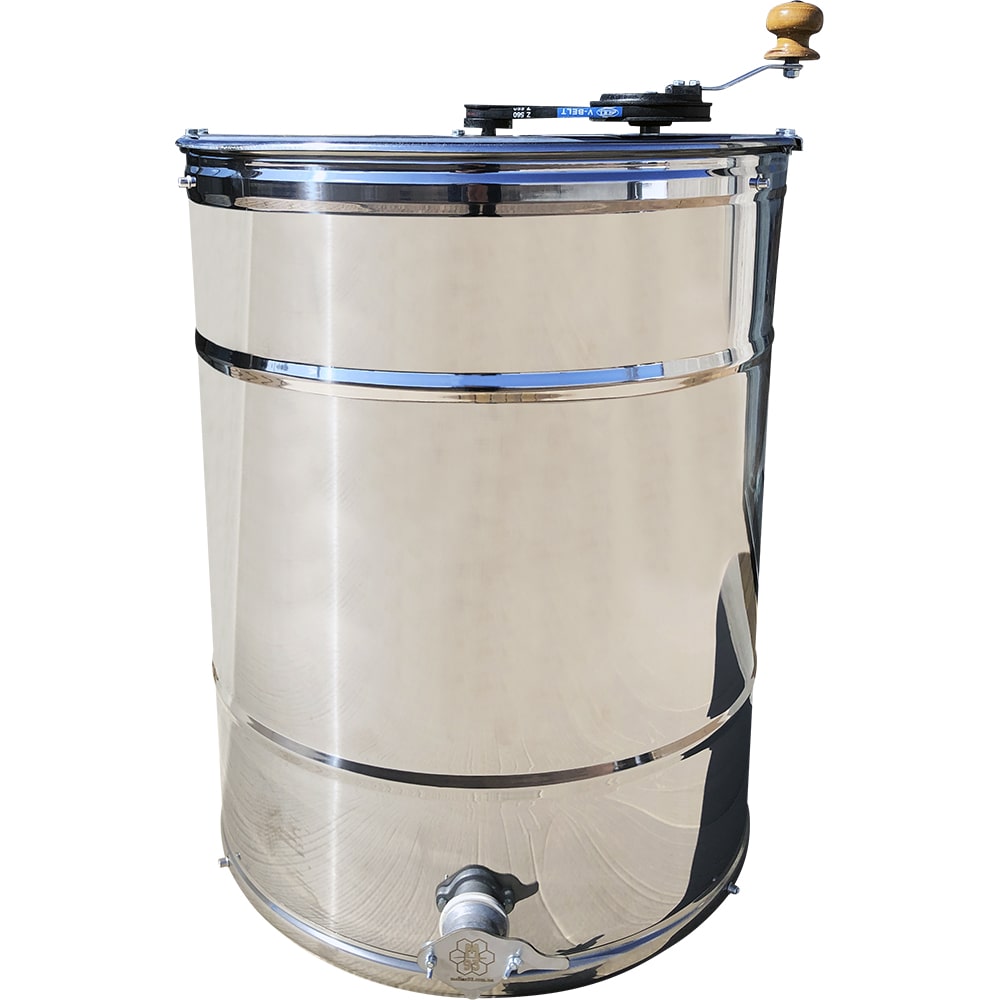 Медогонка з ручним ремінним приводом - надійний інструмент для відкачування меду з рамок швидко, надійно і з мінімальними зусиллями.За один цикл медогонка здійснює відкачування трьох рамок типу Дадан без зайвих зусиль завдяки спеціальній конструкції бака. Нержавіюча сталь AISI 430 з товщиною 0,5 мм, як матеріал, гарантує довговічність використання виробу.