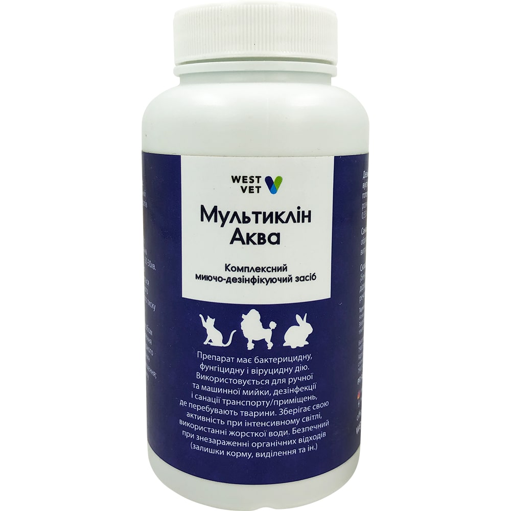 Препарат «Мультиклін Аква» має бактерицидні, фунгіцидні та віруцидні властивості та зберігає ефективність навіть при інтенсивному сонячному освітленні, при використанні жорсткої води або у присутності органічних речовин, таких як залишки їжі або екскременти тварин.Під час застосування важливо готувати робочий розчин у приміщенні, що добре провітрюється, з доступом до води, а після роботи з препаратом мити обличчя і руки водою з милом. Робоче середовище має підтримуватися в діапазоні температур від 0 до +30°С.