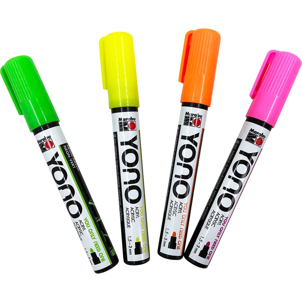 Набір маркерів для мічення маток 1,5-3 мм (Жовтий/Зелений/Помаранчевий/Рожевий) Marabu YONO (Німеччина)