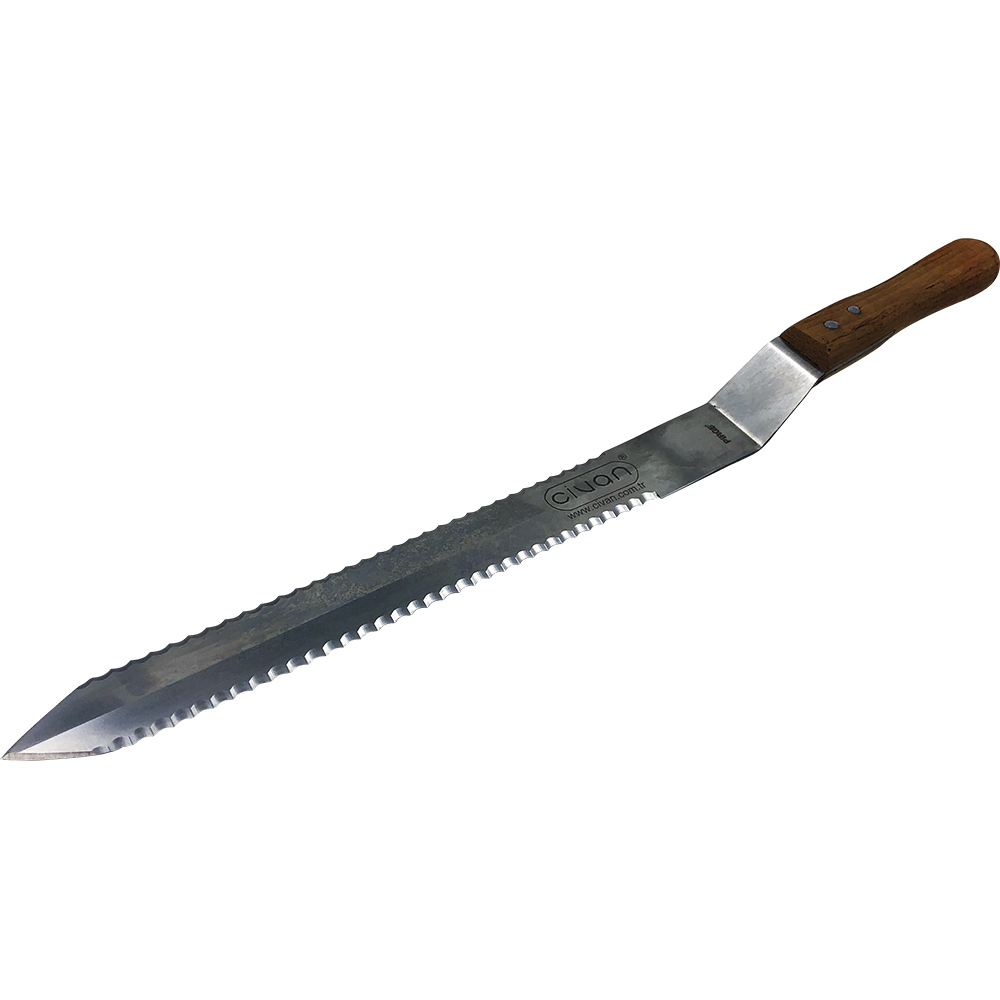 Ніж для розкриття рамок з серрейторной заточуванням CIVAN (двостороння заточка), Туреччина, спеціально розроблений для зручності зрізання забруса з бджолиних рамок. Унікальний метод заточування леза дозволяє з легкістю зрізати воскову печатку, що значно прискорює сам процес розкриття осередків і полегшує працю бджоляра. Особливою популярністю серед бджолярів користується модель ножа з лезом довжиною 300 мм і двостороннім заточуванням. Лезо ножа виготовлено з харчової нержавіючої сталі, заточка в формі зубчиків дозволяє розкривати велику площу медової рамки, не зачіпаючи при цьому дерев'яні частини самої рамки. Завдяки ювелірному заточуванню зубчиків ніж CIVAN не потребує нагрівання і теплої води.