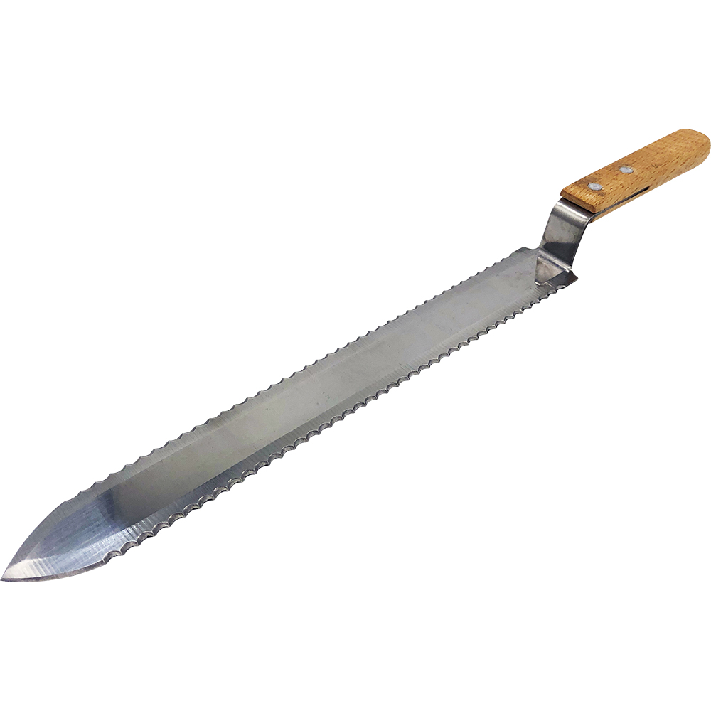 Ніж зубчастий для розкриття сот з дерев'яною ручкою, довжина леза 285 мм. ширина 35 мм, товщина 1,8 мм