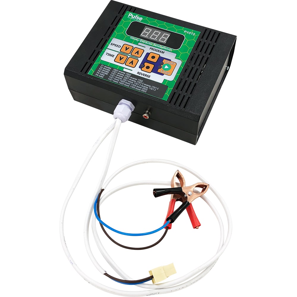 Електронний пульт управління універсального типу - сумісний з медогонками живленням 12 В від постійного струму, використовує динамічне гальмо під час роботи з медогонками з ремінною передачею. У ньому є чотири базові програми для хордіальних і дві програми для медогонок радіального типу, може працювати як в автоматичному, так і напівавтоматичному режимі.Має захист від перенапруги - у разі зростання навантаження понад 4-10А напруги загоряється червоний сигнал індикатора, довше 20 секунд - прилад переходить на роботу в аварійному режимі.