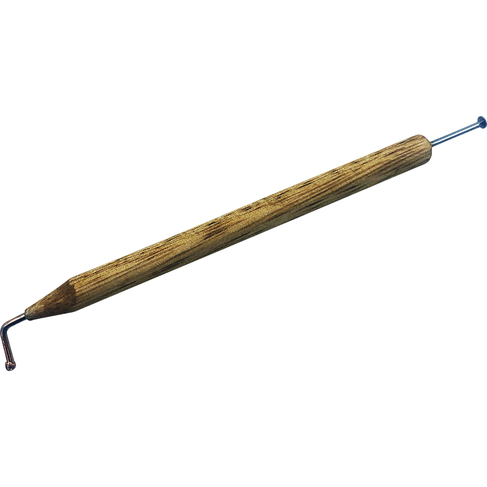 Шпатель для приклеювання опалиток із дерев'яною ручкою та двома робочими голівками допомагає матководу дбайливо та надійно зафіксувати мітку на грудці матки. Одна сторона шпателя - трохи вигнута, інша - з плоским круглим кінчиком. Шпатель невеликого розміру і ваги, 110 х 6 мм, його зручно зберігати разом з опалитками та іншим інвентарем, він легко поміщається в кишеню.Для зручності матководів-початківців рекомендуємо використовувати шпатель у комплекті з трубками Флоббера або іншими пристосуваннями, що дають змогу максимально дбайливо зафіксувати положення матки. На її грудку акуратно наноситься невелика кількість клею, і за допомогою шпателя, підхоплюється опалитка (догори кольоровим боком) і опускається на краплю клею. Через 10 секунд вона міцно зафіксована, матку можна відпускати.