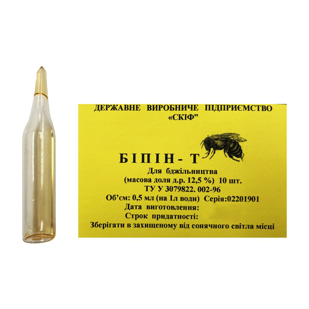 Бипин-Т - це ветеринарний препарат, що використовується в бджільництві для боротьби і профілактики вароатозу (ураження бджолиних сімей паразитуючими кліщами). Він є сильнодіючим акарицидним та інсектицидним засобом. Ефективно впливає і вражає кліщів які паразитують на бджолах.Форма випуску.