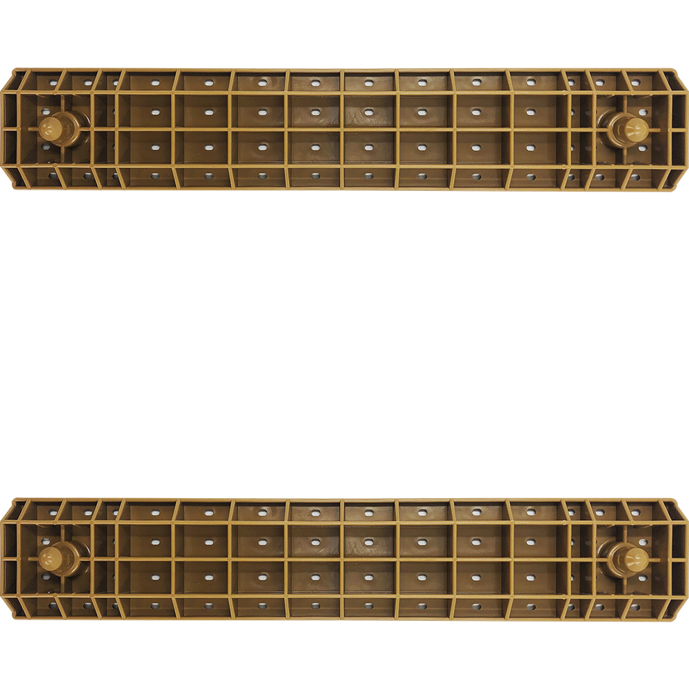 Комплект стабілізаційних рейок з 2 штук для пластикових підставок для вуликів (Nicot). Призначений для уникнення закапування ніг підставки в землю і більшої стійкості на нерівних і пухких поверхнях. Спеціально продумана конструкція з посиленими ребрами жорсткості, робить ці рейки дуже міцними і міцними, при цьому не збільшуючи надмірно їх вагу.Виготовлені з високоякісного харчового пластику із застосуванням технології високоточного лиття.