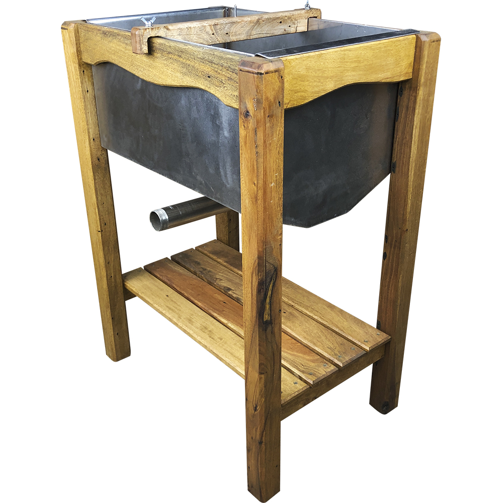 Стіл для розкриття медових рамок Парк Плюс виготовлений з якісної харчової нержавіючої сталі товщиною 2 мм. Рама виконана з красивого і міцного дерева Німвуд (Азадірахта індійська лат. Azadirachta indica). Стіл компактний, мобільний і дуже стійкий.Розміри кошика: 50 х 34 х25 см. Габаритні розміри столу 60 х 40 х 80 см. Ніжки мають перетин 5 х 5 см. Є полка для інструменту. Рама просякнута якісною тіковою олією Тікойл австрійського виробника Adler.