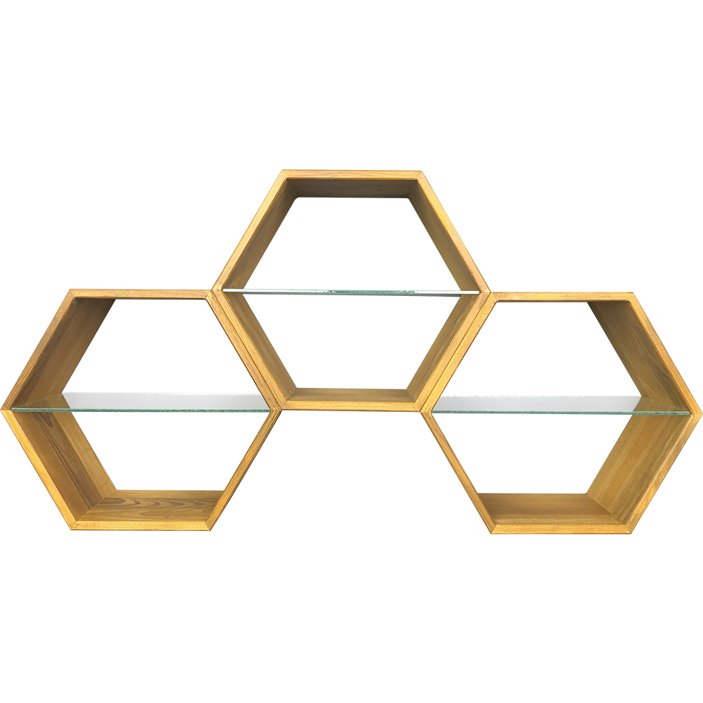 Дерев'яна вітрина у вигляді сот стане прикрасою будь-якого інтер'єру чи магазину. Якщо ви займаєтеся торгівлею меду, цей елемент інтер'єру не залишиться непоміченим і надасть унікальності вашому магазину, а відповідно і привабить покупця. На ній дуже виграшно виглядають баночки з медом.Вітрина виконана з породи дерева сосна, має три скляні полиці, які легко зняти при транспортуванні, оброблена маслом тику для дерева ADLER Pullex Teaköl на основі розчинника для листяних і екзотичних порід деревини. Гарне проникнення чудово підкреслює структуру деревини, має дуже гарний водовідштовхувальний ефект.