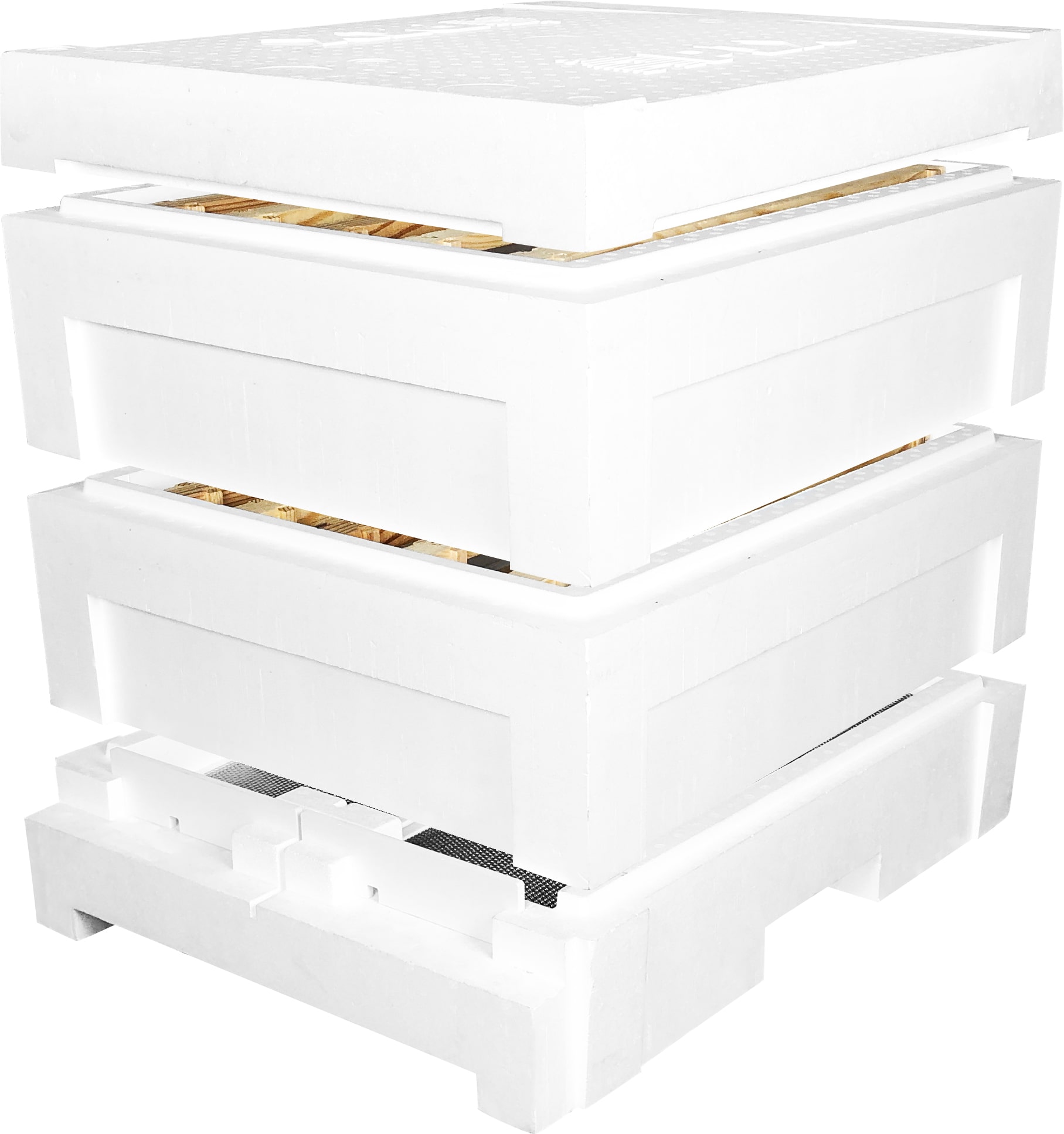 Данная модель улья APIX предназначена для использования с 10 рамками. Имеет в комплекте сетчатое дно с двумя летками и двумя вентиляционными отверстиями, два корпуса 145 мм и крышу. Пенополистирол имеет высокую плотность 100 кг/м3. Крыша улья имеет толщину 52мм в самом тонком месте и достаточно тяжела, чтобы не использовать дополнительную нагрузку для защиты от сдувания порывом ветра. Толщина стенок 40мм. Все элементы улья цельнолитые.