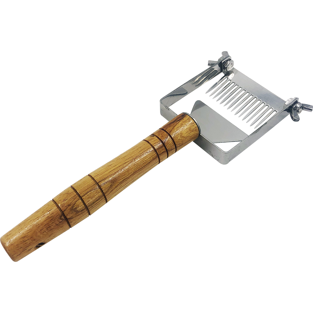 Вилка для распечатывания сот от Парк Плюс, выполнена по модели вилки-культиватора из прочной нержавеющей стали с очень острыми и правильно заточенными иглами. Ее усовершенствованная конструкция позволяет равномерно распечатывать рамку с помощью 17-ти иголок, даже в самых труднодоступных местах. При распечатывании медовых сот с помощью вилки, её не нужно нагревать потому, как она изначально имеет продуманную конструкцию. Ручка вилки выполнена в лучших традициях Парк Плюс. Она изготавливается из прочного дерева, которое прослужит долгие года.