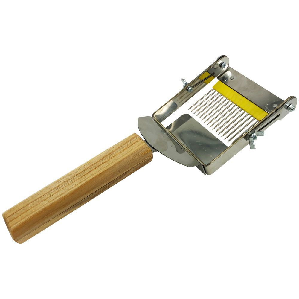 Вилка для распечатывания сот, выполнена по модели вилки-раскладушки из прочной нержавеющей стали марки AISI 304, толщиной – 1.5 мм , с очень острыми и правильно заточенными иглами. Ее усовершенствованная конструкция позволяет равномерно распечатывать рамку с помощью 18 иголок. Конструкцией вилки предусмотрена регулировка угла «атаки» игл по отношению к крышечкам сот, что позволит добиться наилучшего результата при минимальных усилиях.